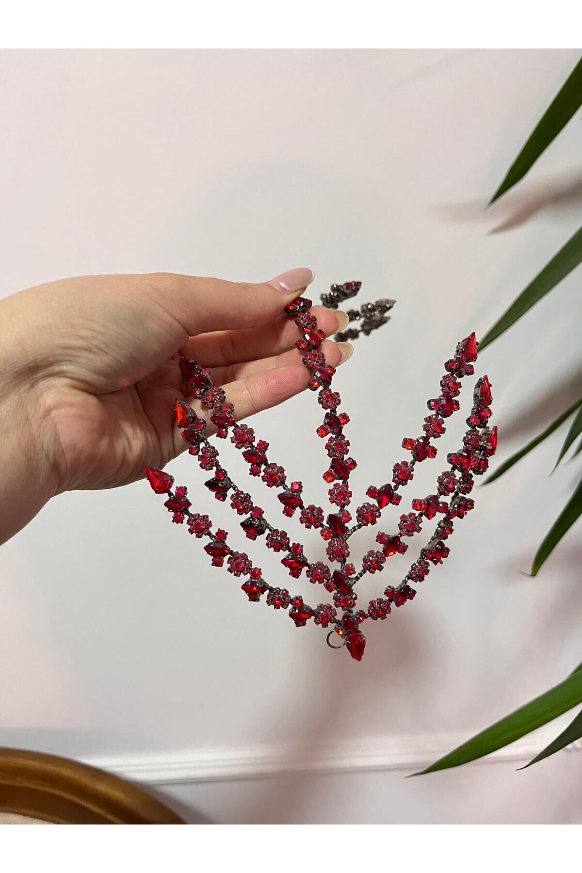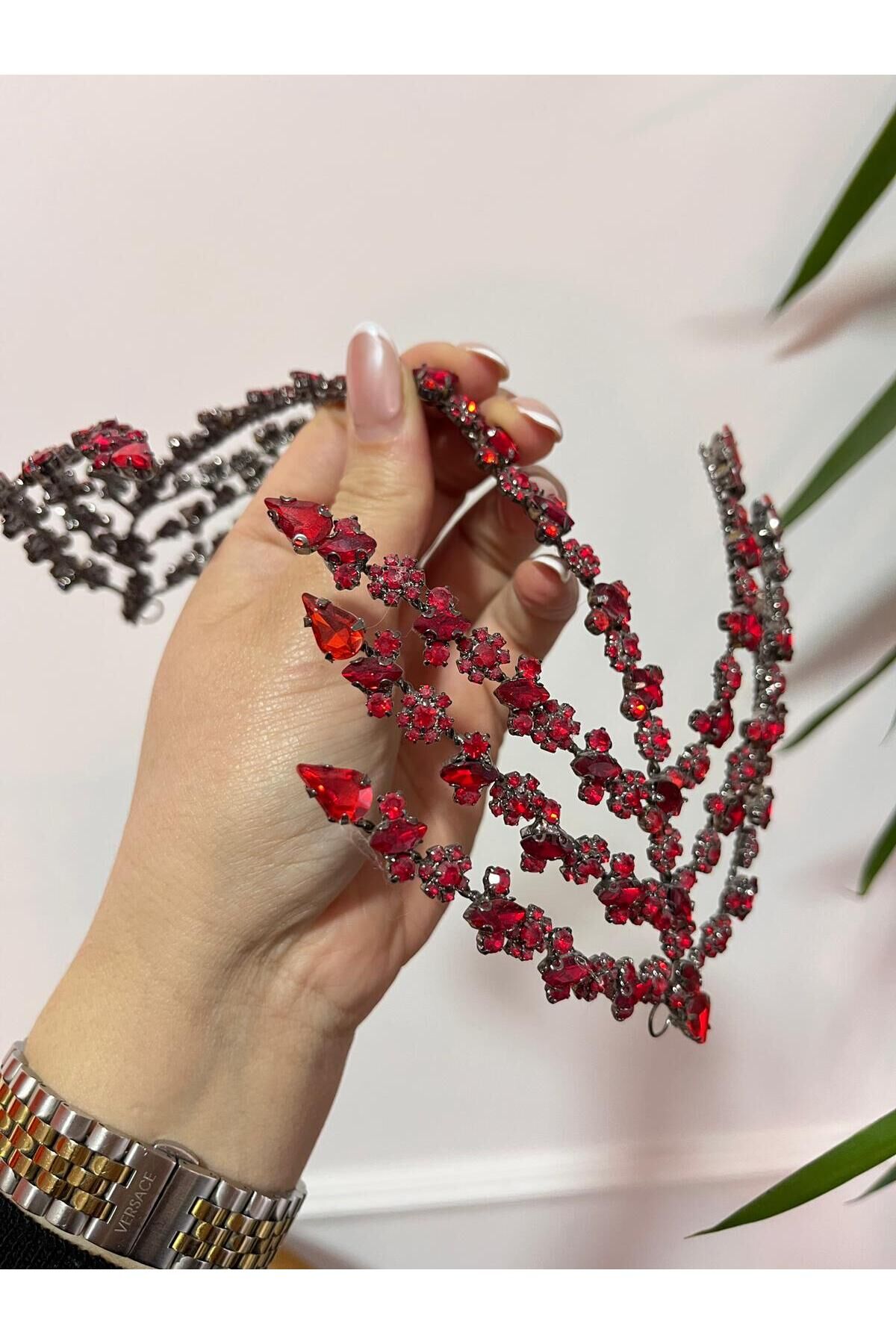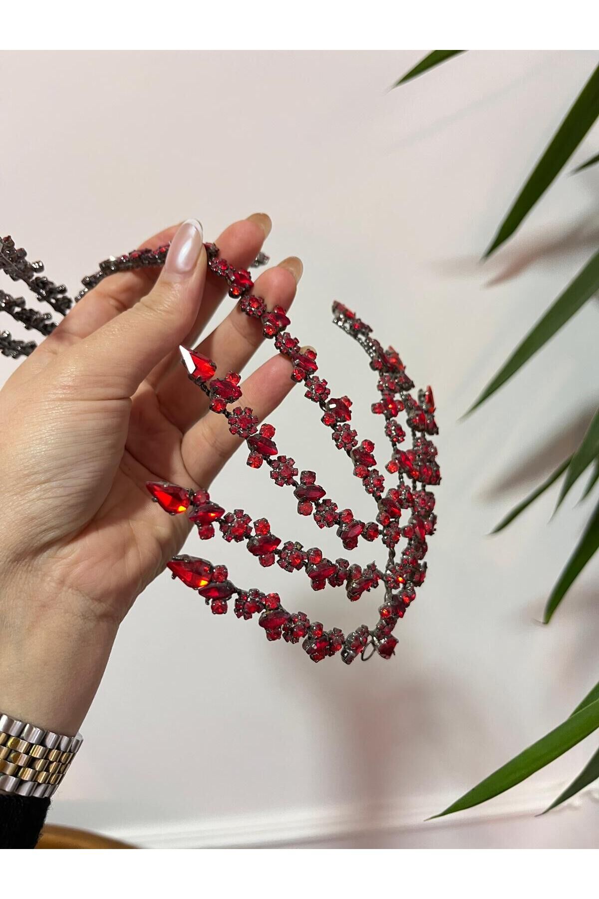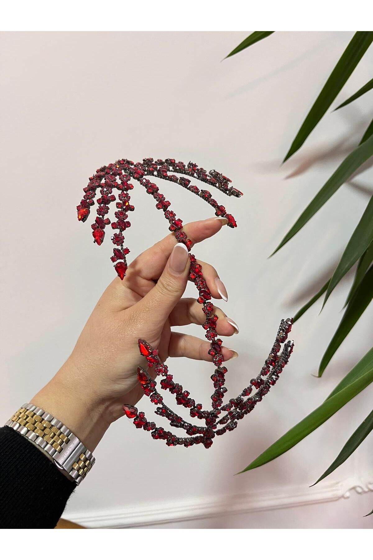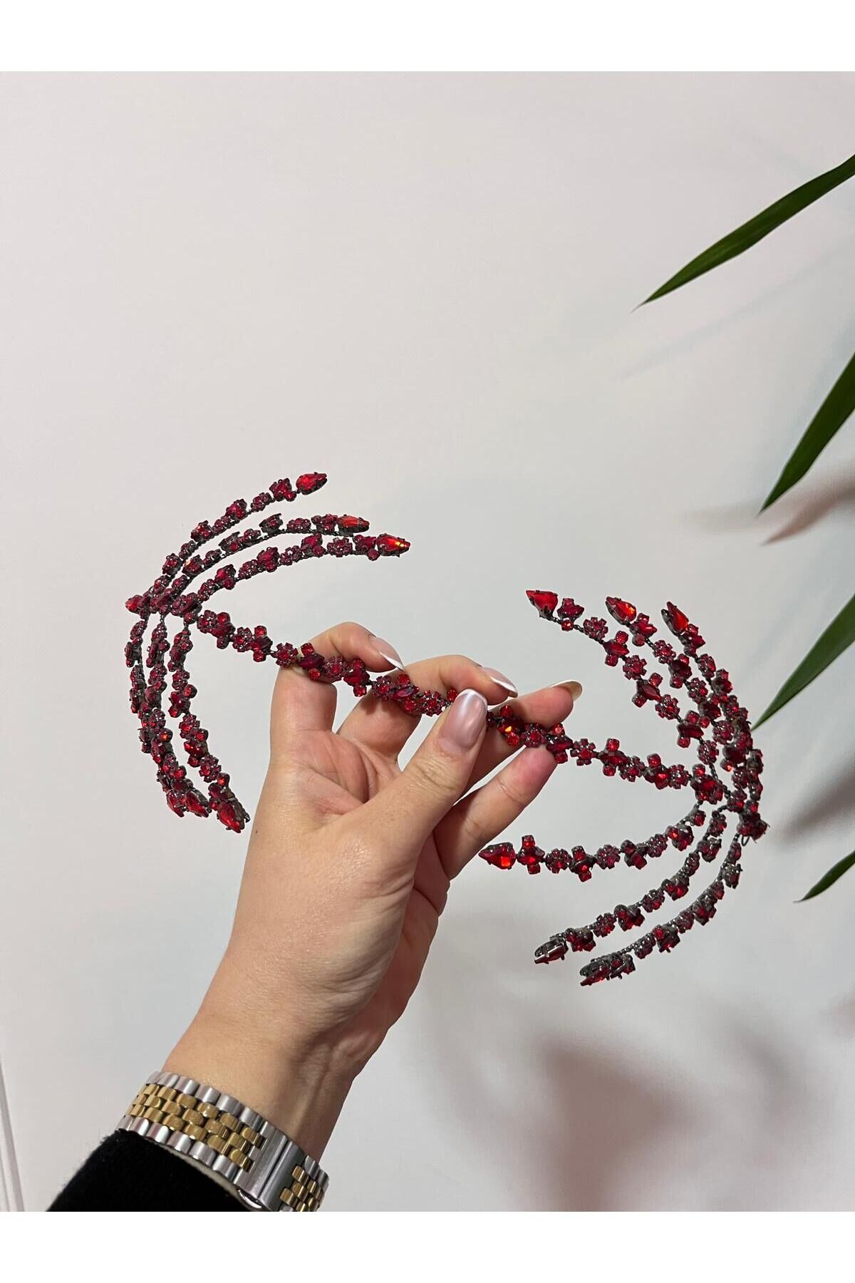 Çift Taraflı Helen Saç Aksesuarı Gelin Tacı Kırmızı