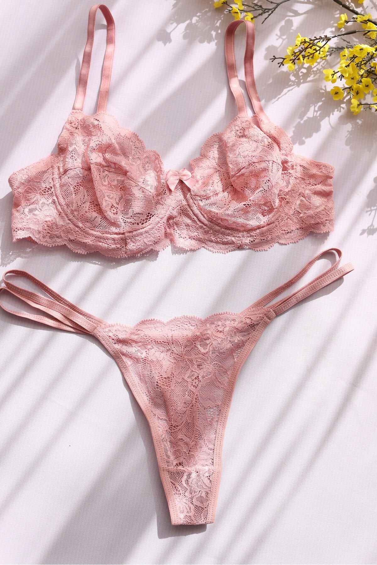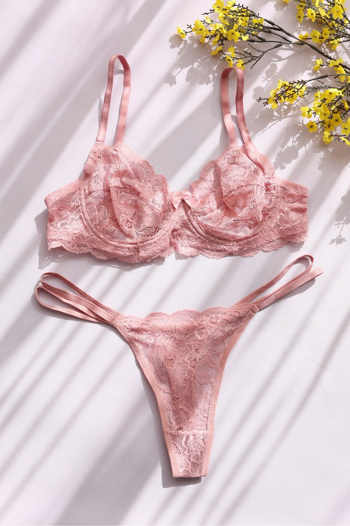 - Zarif tül dokuması ile tasarlanmış, her mevsim rahatlıkla tercih edilebilen dantel pudra pembe brode takım.; - Çiçek desenleriyle süslenmiş, göz alıcı bir görünüm sunan bu takım, hem gündüz hem de gece kullanımına uygun.; - Balen detayları sayesinde vücut hatlarını nazikçe sararak feminen bir siluet yaratır.; - Tanga kesimi ile minimal ve şık bir iç giyim deneyimi yaşatırken, rahat hareket etme özgürlüğü sağlar.; - Dokuma tipi kumaşıyla dayanıklılığı artırılmış ve uzun süreli kullanım için idealdir.; - Bu ürünün menşei Türkiye'dendir.; - Kadın ve kız kullanıcılarına hitap eden geniş yaş grubuna sahip olan bu takım, herkes tarafından keyifle kullanılabilir.; - İç giyim koleksiyonunuzda yerini alacak bu 2 parçalık set, hem günlük hem de özel gün kombinlerinizde vazgeçilmez olacaktır.;