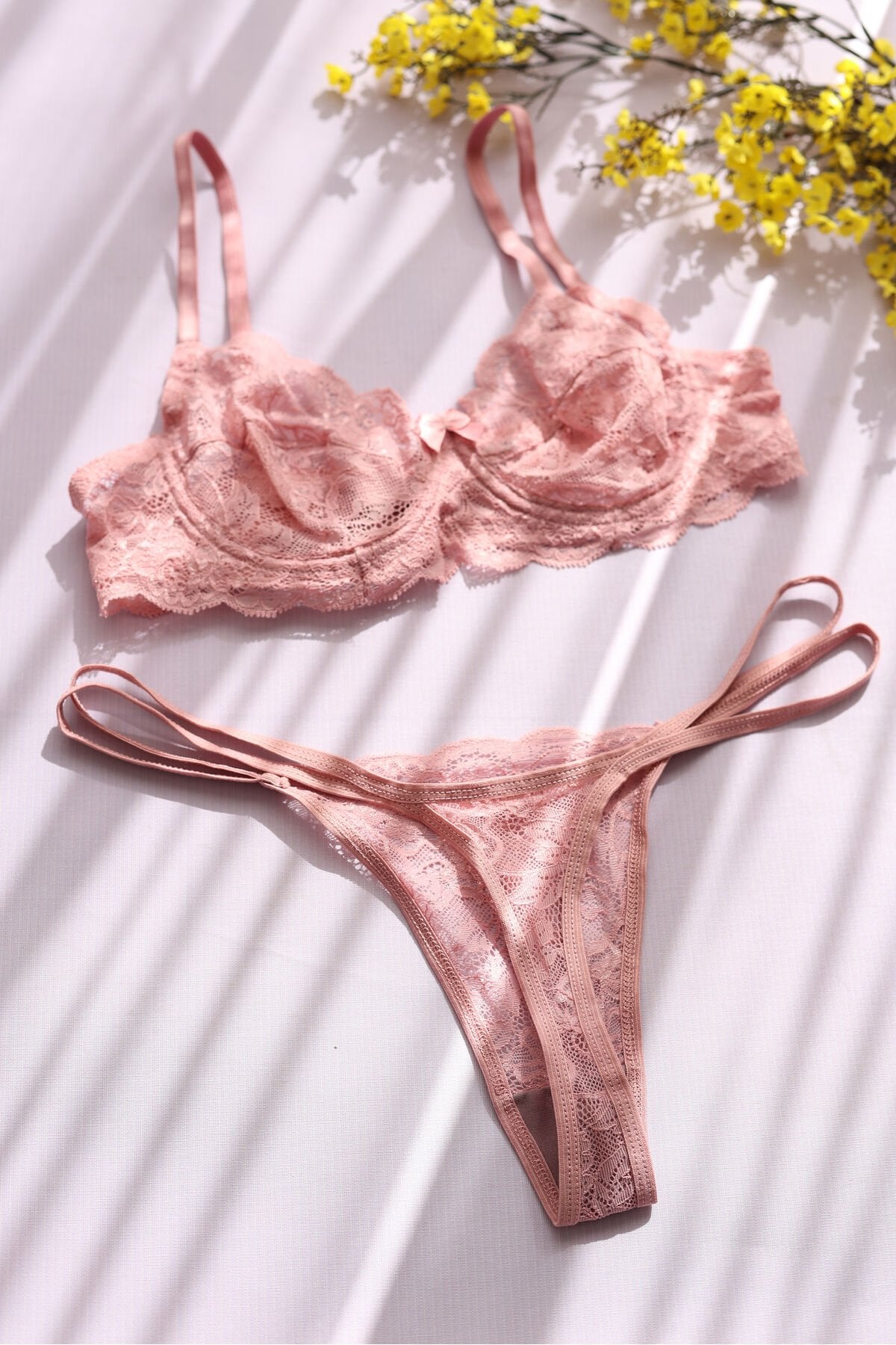 Dantel Pudra Pembe Brode Takım