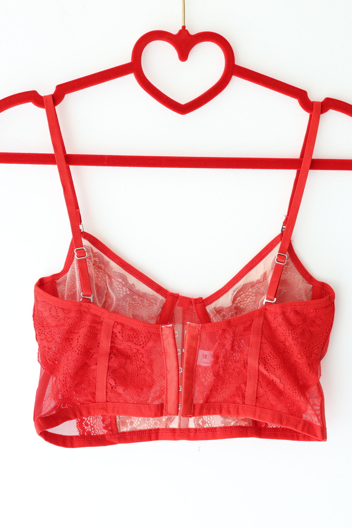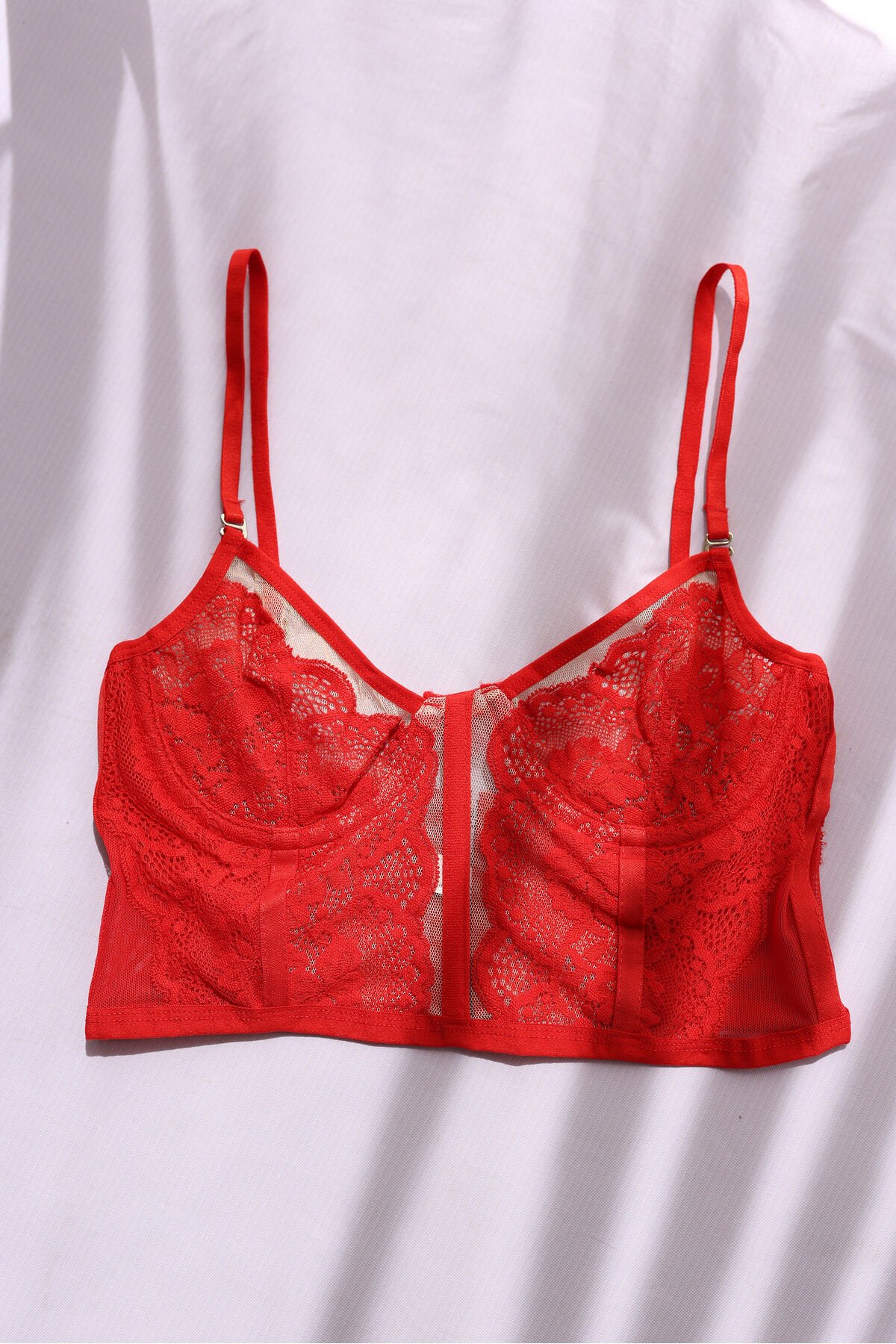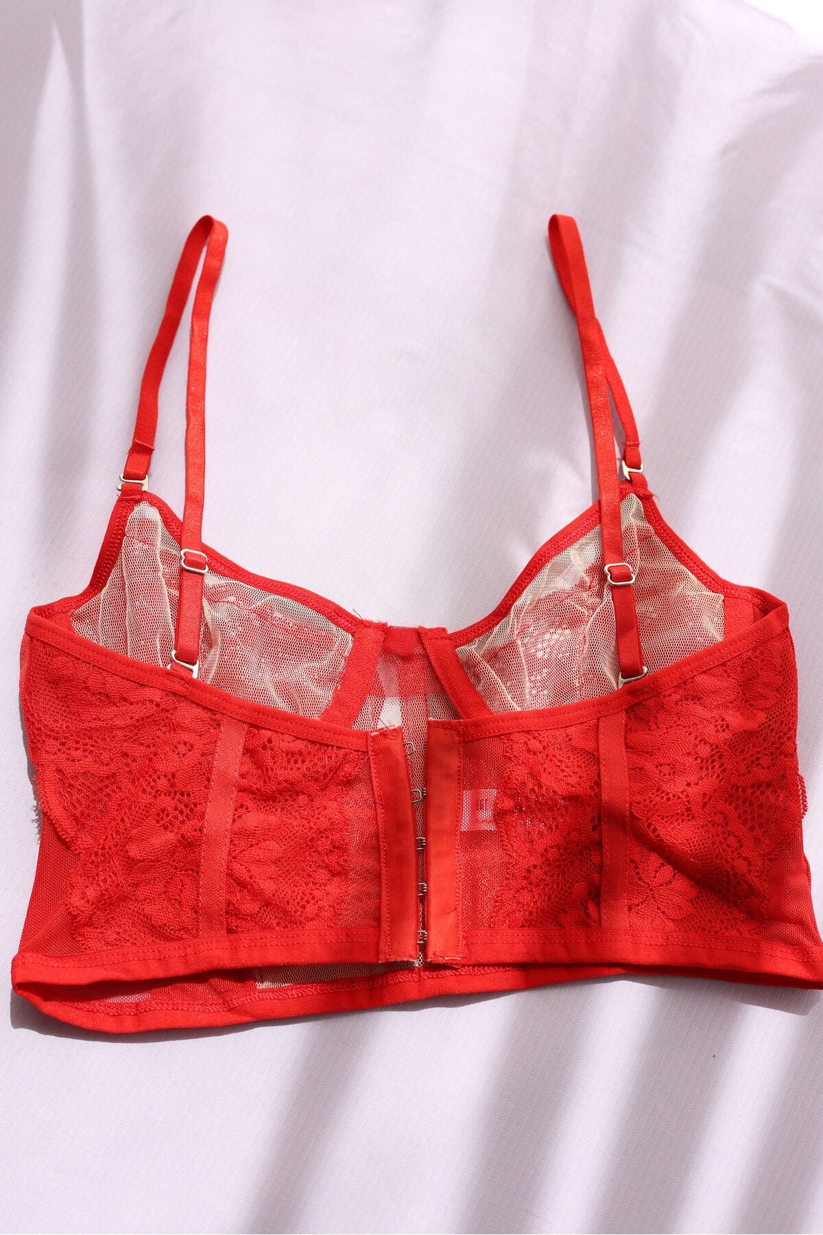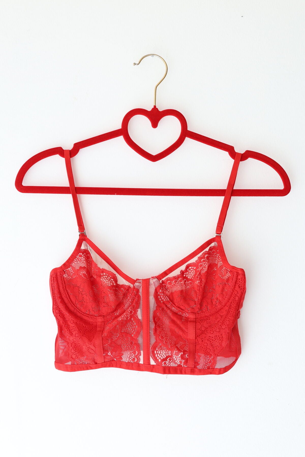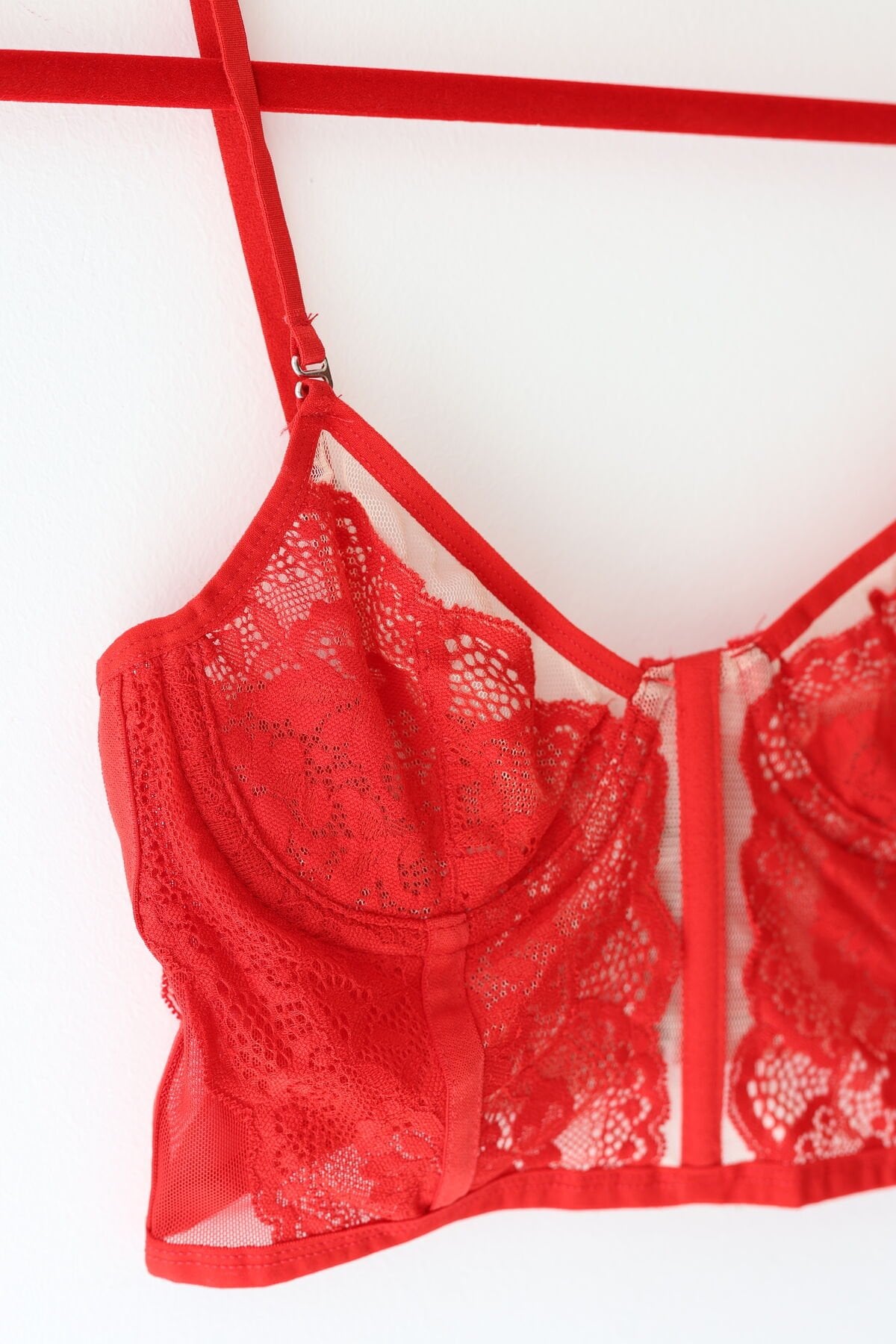 Kırmızı Ayarlanabilir Lastikli Balenli Dantelli Büstiyer