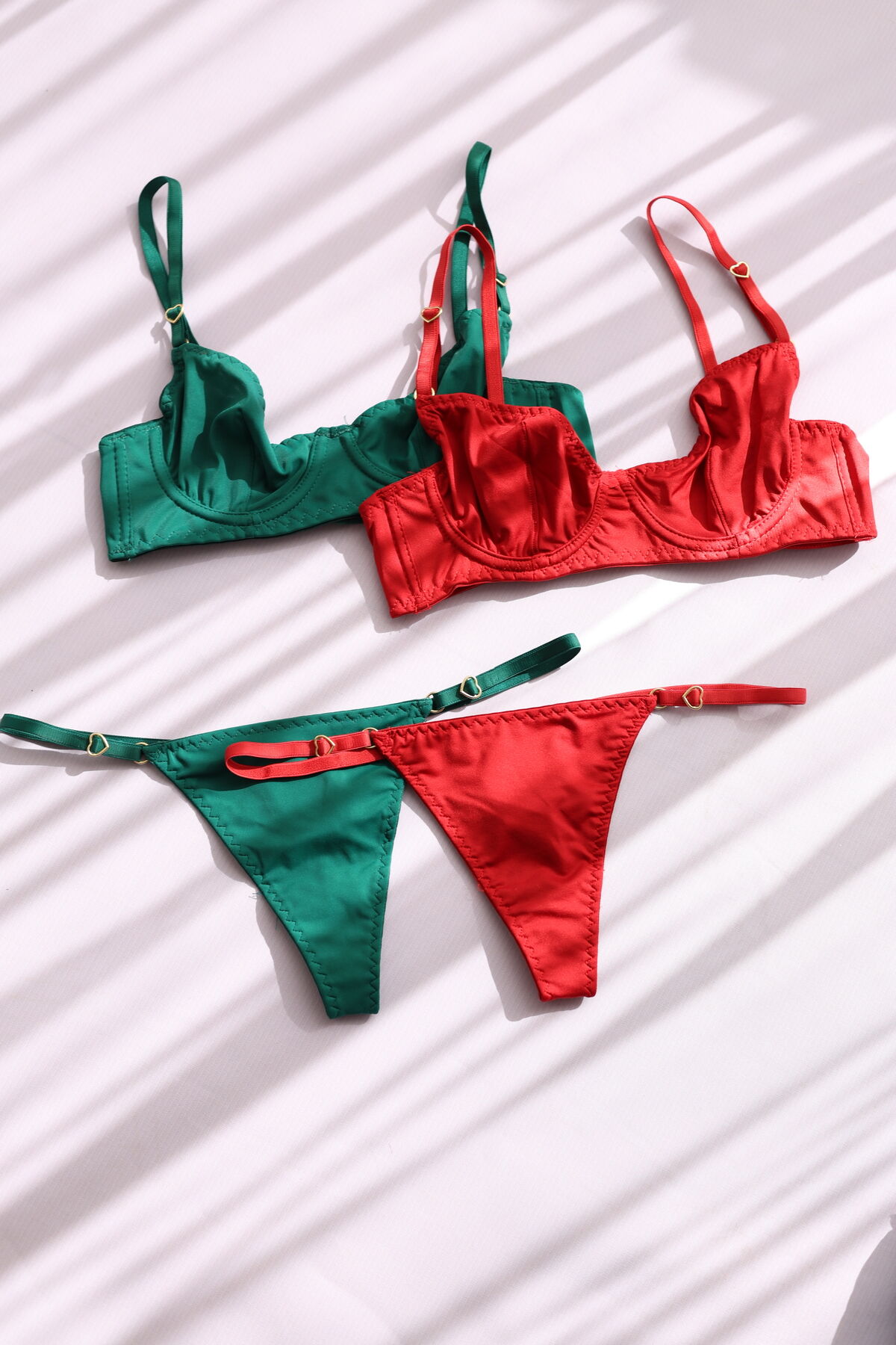 - Gençlerin enerjisini yansıtan kırmızı renkli bra seti, günlük kullanım için idealdir.; - Ayarlanabilir askıları sayesinde her bedene uyum sağlayarak konforlu bir deneyim sunar.; - Yerli üretim olup, Türkiye'de kaliteli malzemeler kullanılarak üretilmiştir.; - Lounge veya ev ortamında rahatlıkla tercih edilebilecek tasarımıyla evdeki şıklığınızı korur.; - Dokuma kumaşı sayesinde dayanıklılığı artırırken, cildinizle dost dokunuşlar sunar.; - Kadın ve kız çocuklarına özel olarak tasarlanmış bu bra seti, iç giyim koleksiyonunuzda yerini alır.; - Kapsız yapısı ile modern ve minimalist bir görünüm sağlarken, vücut hatlarınıza mükemmel uyum gösterir.; - Viskon materyali hafifliğiyle gün boyu rahat etmenizi garanti ederken nefes alabilir yapıdadır.; - İki parçadan oluşan set; hem üst hem de alt siluet seçenekleriyle tamamlanmış olup, bütünsel bir iç giyim çözümü sunar.; - Tanga kesimiyle minimalizmi ön planda tutarken saten detaylarıyla zarif bir parlaklık kazandırır.
