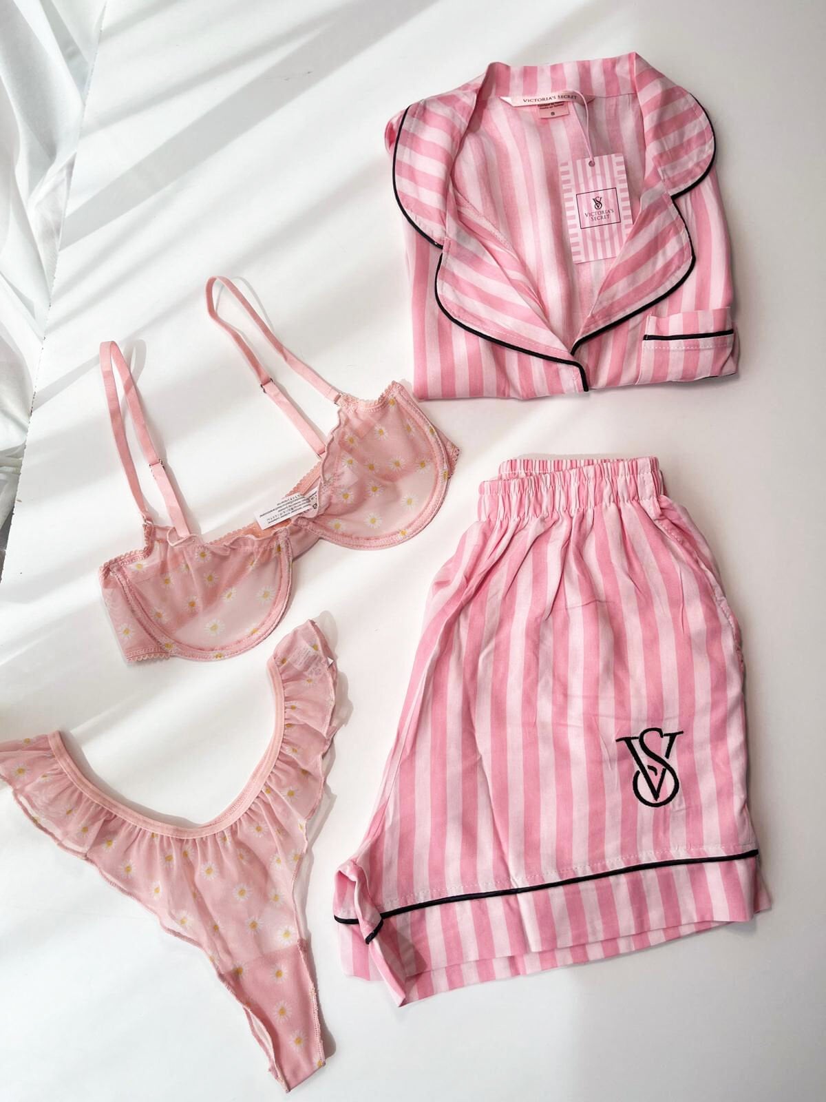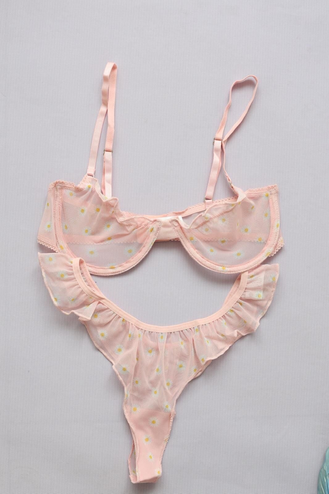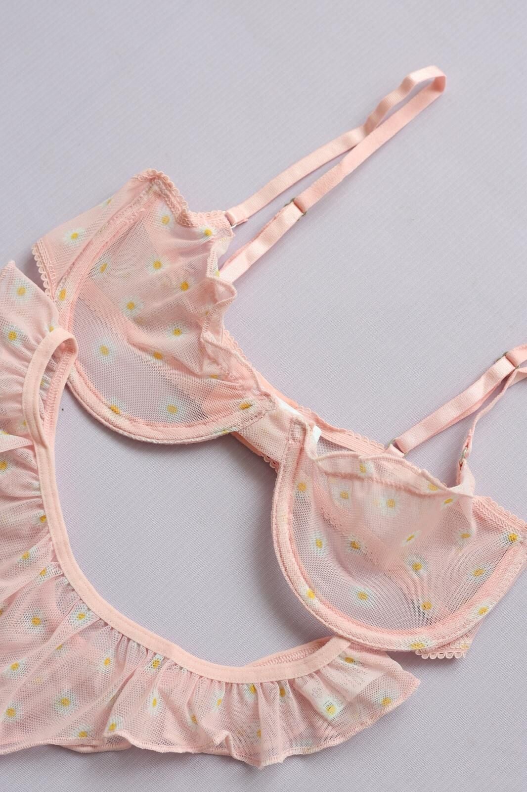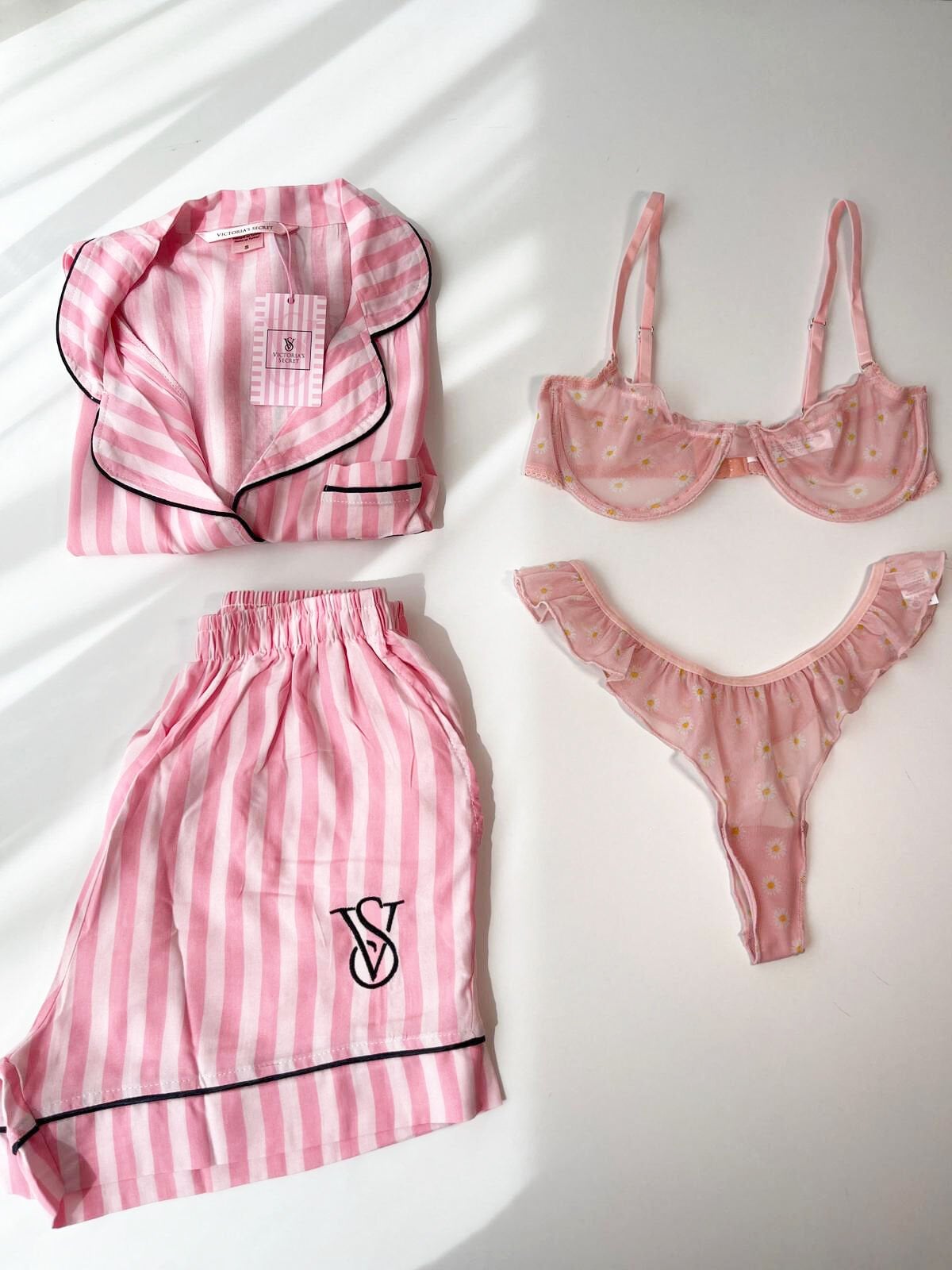 Pamuklu çizgili şort, balenli tül sütyen ve papatya desenli alt tanga ile rahatlığın ve şıklığın birleşimi. Hafif dokusu ve nefes alabilen kumaşı sayesinde konfor sunar. Günlük kullanım ve özel anlar için ideal, zarif detaylarla tasarlanmış takım.