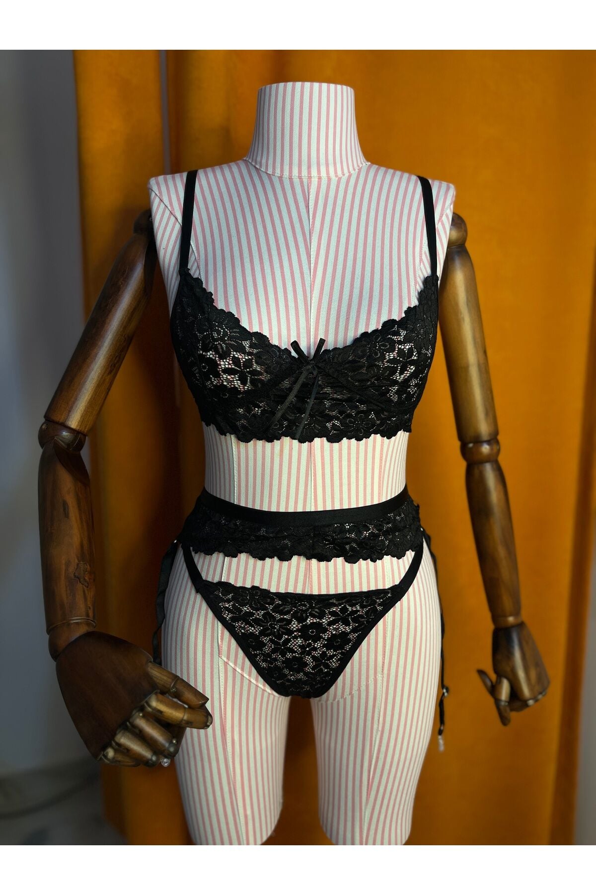Siyah Dantelli Jartiyer Takım Seti