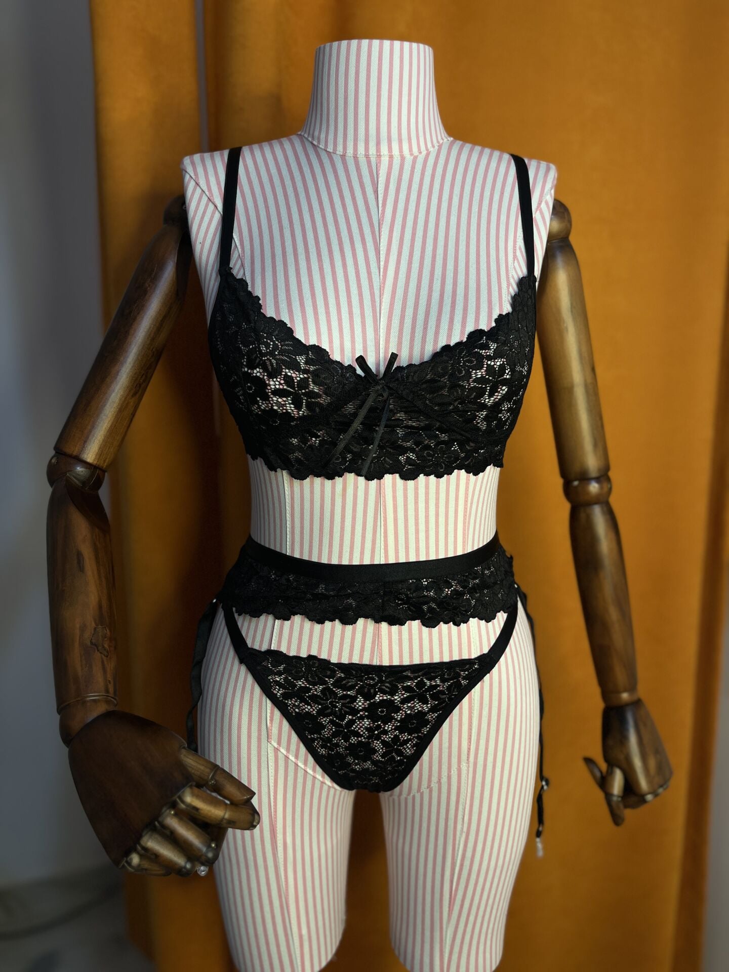 Siyah dantelli jartiyer takım seti, zarif ve çekici tasarımıyla özel anlarınızı unutulmaz kılar. İnce işçilikle hazırlanmış dantel detaylar, vücuda kusursuz otururken feminenliğinizi ön plana çıkarır. Konforlu yapısı ve şıklığıyla kalbinizde taht kuracak.
